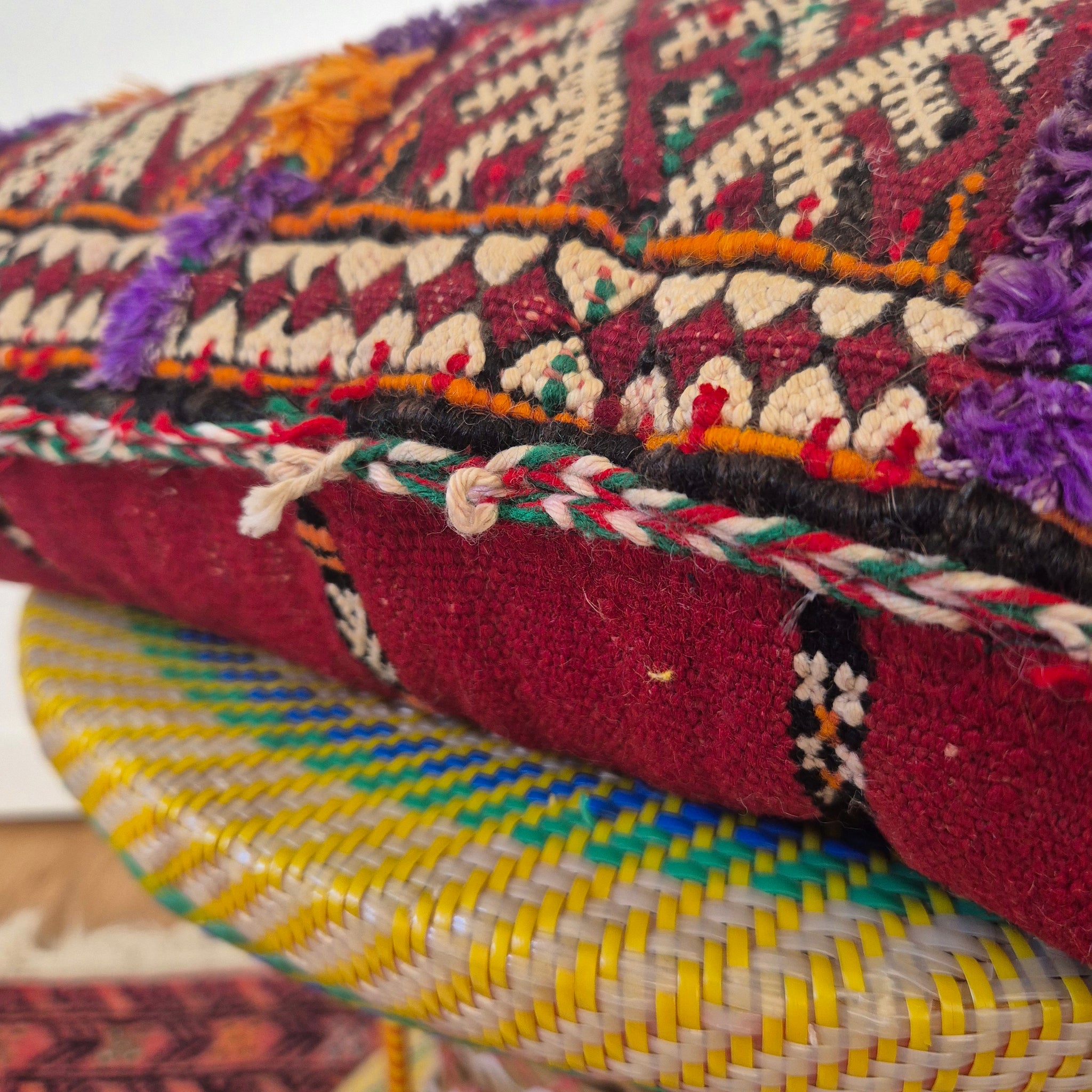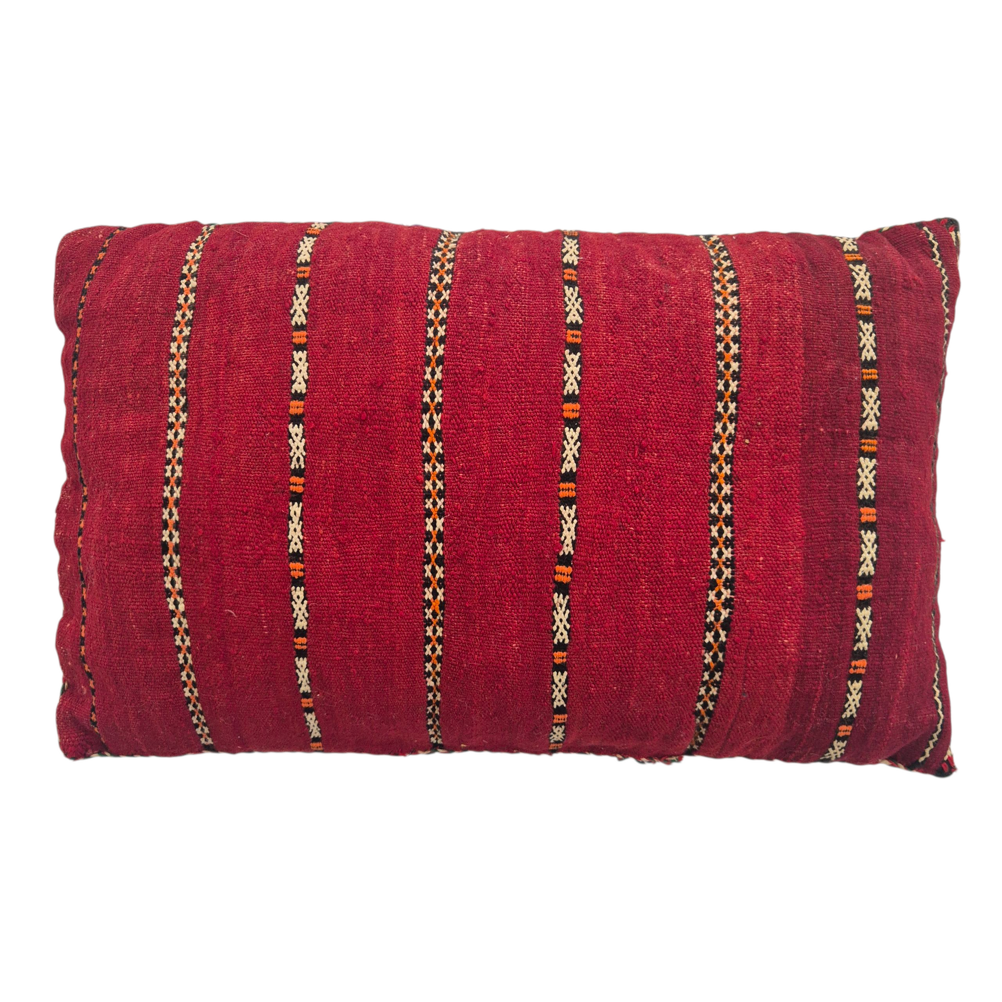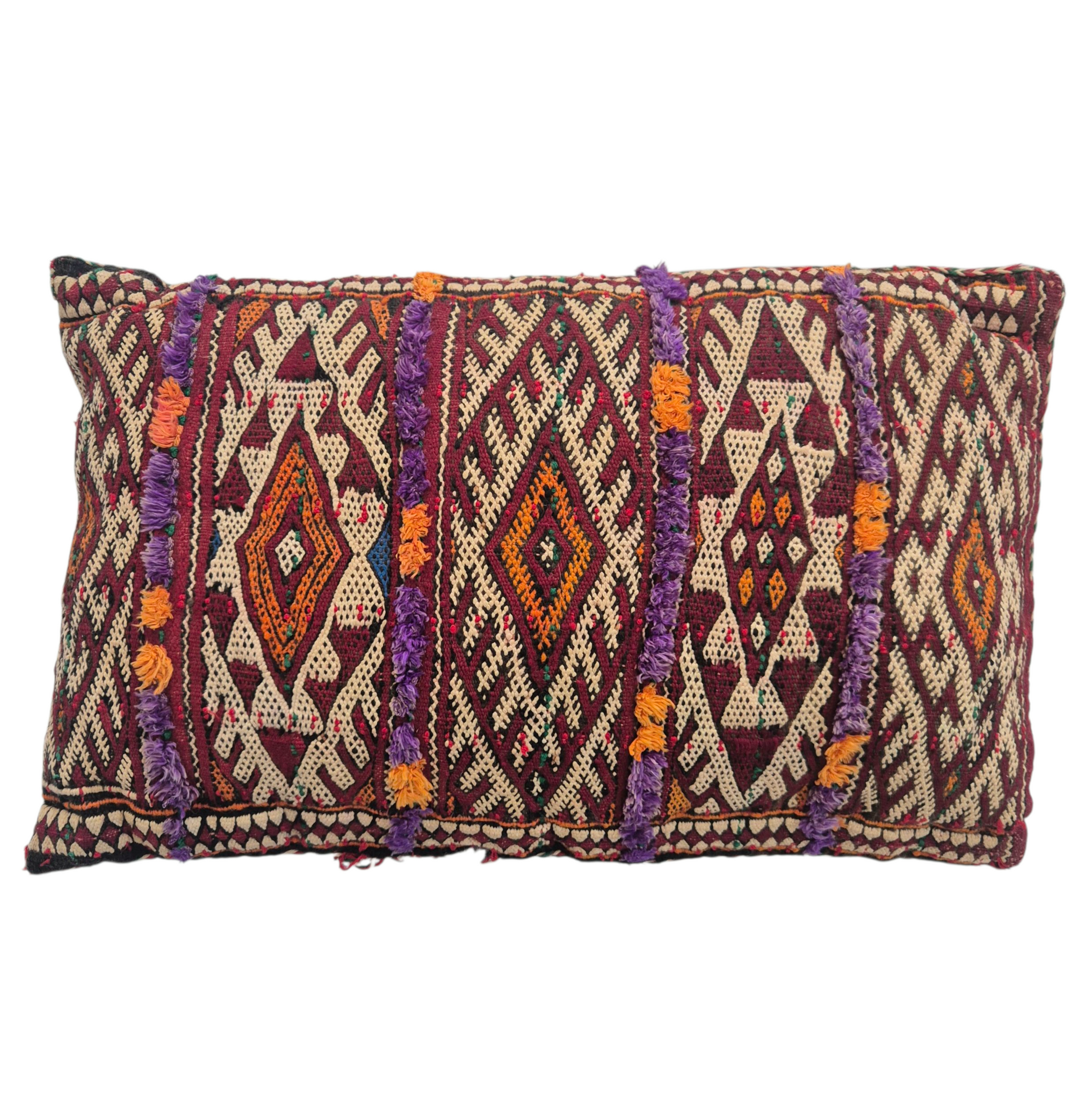 Berbers are ethnic groups indigenous to North Africa. This Moroccan Boujaad cushion cover has been handwoven on a wooden loom by the Berber women in the villages.