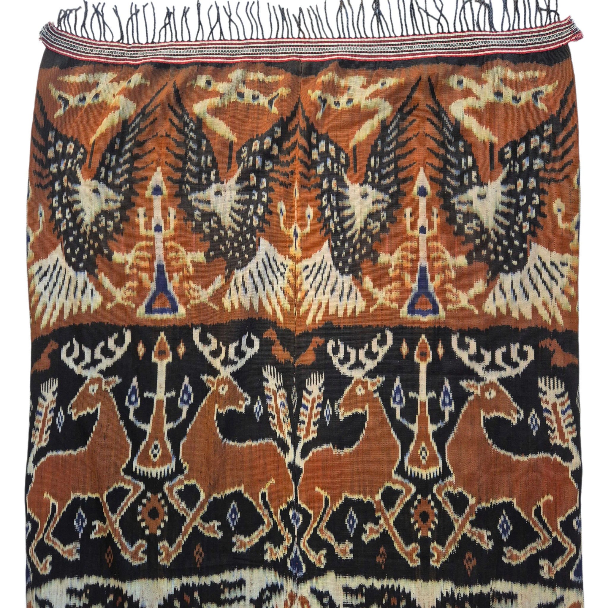 Although Christianity is the dominant religion of the Sumbanese, many combine their faith with animise practice. They believe a person is able to acquire the spiritual powers and qualities of certain creatures when textiles displaying such motifs are worn.