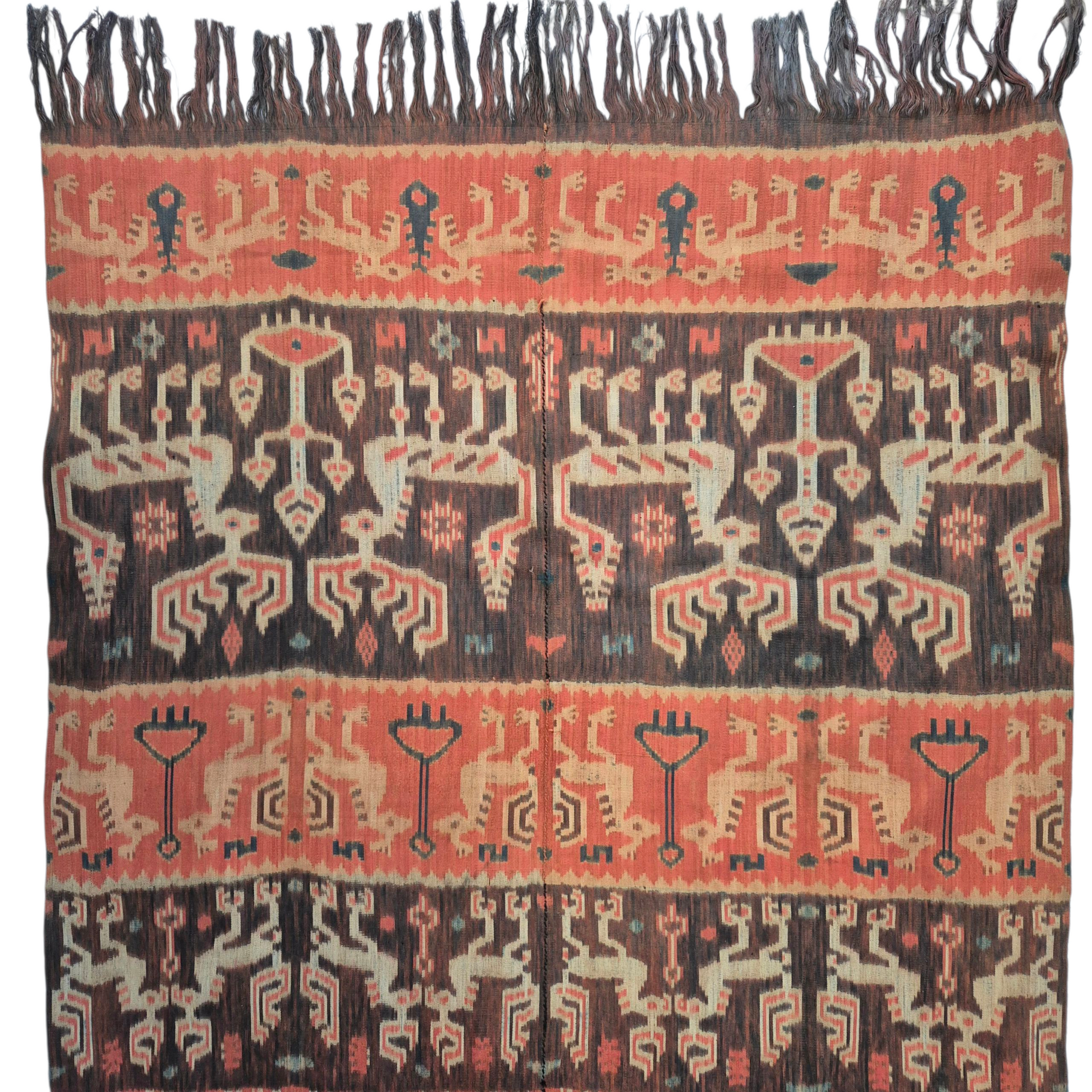 Although Christianity is the dominant religion of the Sumbanese, many combine their faith with animise practice. They believe a person is able to acquire the spiritual powers and qualities of certain creatures when textiles displaying such motifs are worn.